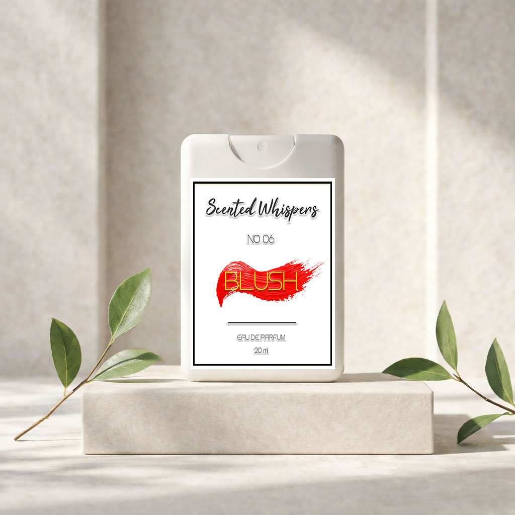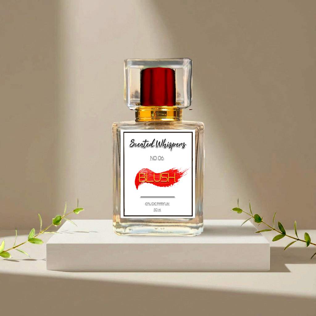 Blush opens with bright fruity notes and soft florals, settling into a smooth blend of peony and gentle woods.